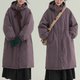 The hooded design, like a soft veil in the mist, shields from wind and cold.
