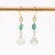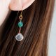 - Earrings featuring Zambian emeralds and Ceylon moonstones. Both stones have been carefully selected for their high quality and elegant hues. While the design is simple, they possess a captivating presence, gently swaying by your ears.