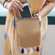 • กระเป๋าสะพายใบเล็ก ซึ่งได้แรงบันดาลใจในการออกแบบมาจาก กระติ้บข้าวเหนียว ซึ่งเป็นภาชนะอาหารทางภาคอีสาน ของประเทศไทย โดยเราออกแบบลายกระติ้บขึ้นและ นำไปปั้มความร้อนบนหนังเทียม เพื่อให้เกิดลวดลาย เพิ่มความน่ารักด้วยพู่แฮนด์เมด