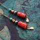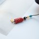 Natural High-Content Cinnabar Koi Phone Charm. Featuring natural high-content cinnabar koi, accented with turquoise old-style beads and agate Dzi beads. Complemented by 925 silver "Fu" (fortune) and "Ji" (auspiciousness) gourd pendants. Small and exquisite, it signifies continuous good luck, a fresh start, and warding off evil.