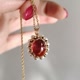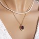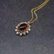 Vintage Garnet Necklace – A dainty garnet and pearl pendant featuring a deep red oval garnet, lovingly wrapped in delicate gold wire and encircled by a halo of luminous pearls. This charming garnet gold necklace captures the light with a timeless grace, making it an exquisite Christmas, birthday, wedding, or anniversary gift for her. Whether worn for daily elegance or special occasions, its vintage-inspired design tells a story of romance and refinement.