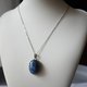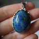 Deep blue, reminiscent of a captured night sky, characterizes the natural stone lapis lazuli, adorned with a mystical blue higanbana motif, creating a pendant where tranquility and vibrancy coexist.