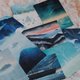 The artwork specifically uses blue and vibrant orange hues, aiming to capture the moment when sunset and night converge.