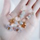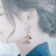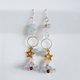 These stylish earrings are made with cute gray aurora-colored flower beads, circle hoops with swaying stars, and mini Clip-On of fluorite in soothing colors.☺