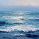 "Rippling Sea," part of the "Poetic Nature Series," captures the moment sunlight dances on the ocean's surface with multi-layered, thickly applied blues. Delicate waves crest in the foreground, while the distant horizon dissolves into a misty sky. A soft golden light stretches across the water, evoking a sense of both tranquility and power. The bold impasto strokes and knife marks lend a tangible texture to the wave crests and water patterns, as if one can hear the ebb and flow of the tide and the whisper of the sea breeze.