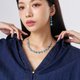 In the fleeting moment where blue light and silver shadow intertwine, your elegance quietly blossoms. Interspersed blue synthetic gemstones and silver circular charms create a balanced and layered visual aesthetic. Each blue stone is meticulously bezel-set, its translucent luster akin to starlight on a lake's surface, paired with a delicate silver chain. It perfectly complements any ensemble, from everyday wear to formal occasions.