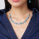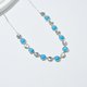 - In the fleeting moment where blue light and silver shadow intertwine, your elegance quietly blossoms. Interspersed blue synthetic gemstones and silver circular charms create a balanced and layered visual aesthetic. Each blue stone is meticulously bezel-set, its translucent luster akin to starlight on a lake's surface, paired with a delicate silver chain. It perfectly complements any ensemble, from everyday wear to formal occasions.
