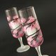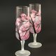 Set of 2 Crystal Low stem Champagne Glasses. Sakura painting. Matt Glass Effect. Retro style Crystal glasses, ONE of a KIND and READY to SHIP!