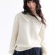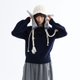 - This doll collar puff-sleeve sweater features a classic H-line shoulder cut for a simple, timeless silhouette. The subtle puff sleeves add a touch of vintage charm and an effortlessly relaxed vibe. Its slightly oversized fit drapes loosely, offering a casual feel that suits various body types. The basic round neckline is enhanced with a delicate ruffled doll collar, perfect for peeking out from under a vest or V-neck cardigan. The sleeves are designed with a gentle puff, subtly flattering the arms without being overly dramatic.