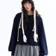 A delicate ruffled doll collar is added to the basic round neckline, designed to be layered with vests or V-neck cardigans, peeking out elegantly.