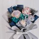 A dark blue banknote bouquet. The size of the small bouquet is about 28cm high. The bouquet contains one banknote flower with a total red envelope value of 300 yuan, and is matched with a combination of non-withering hydrangeas, non-withering baby's breath, and sola flowers.