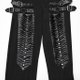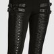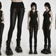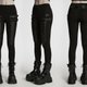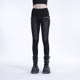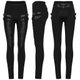 - Chic and sexy Punk 3D pleated leggings. Crafted from comfortable elastic knit fabric and rubberrized faux leather. Features adjustable double loop straps. The 3D pleats on the thighs, accented with studs, highlight a unique personality. Practical pockets are available at both the front and back.