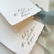 __Calligraphy__ I Hand-lettered in Western calligraphy (vintage brown) with 'Our Vows' on the front cover and 'And so the adventure begins.' on the back cover