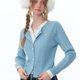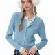 - ziziFei Autumn/Winter Collection: American Design-Inspired Colorblock Patchwork Faux Two-Piece Blue Cable Knit Cardigan Outerwear for Women