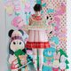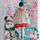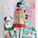 - Tailors in the forest embroidered patterns, red pink retro checkered illustrations, printed long sleeved dresses, short skirts