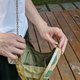 Recycled coffee bag macaron bow mouth gold bag length adjustable custom Christmas exchange gift Christmas gift - กระเป๋าแมสเซนเจอร์ - ผ้าฝ้าย/ผ้าลินิน สีนำ้ตาล